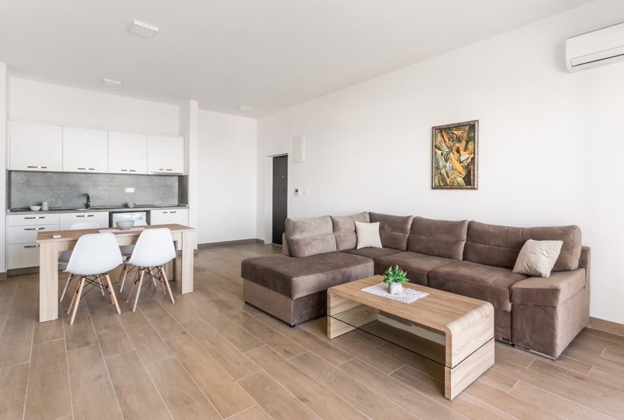 Struktura: dnevni boravak sa kuhinjom i trpezarijom, 2 spavaće sobe, kupatilo