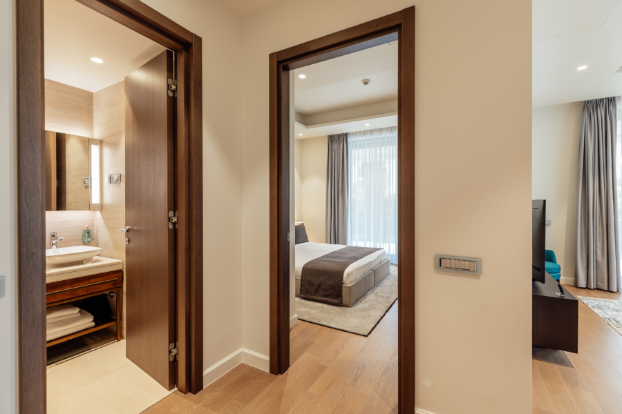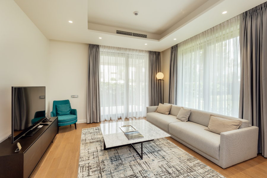 U cijenu stana je uključeno parking mjesto u garaži i korišćenje bazena namijenjenog vlasnicima nekretnina u okviru kompleksa Portonovi.